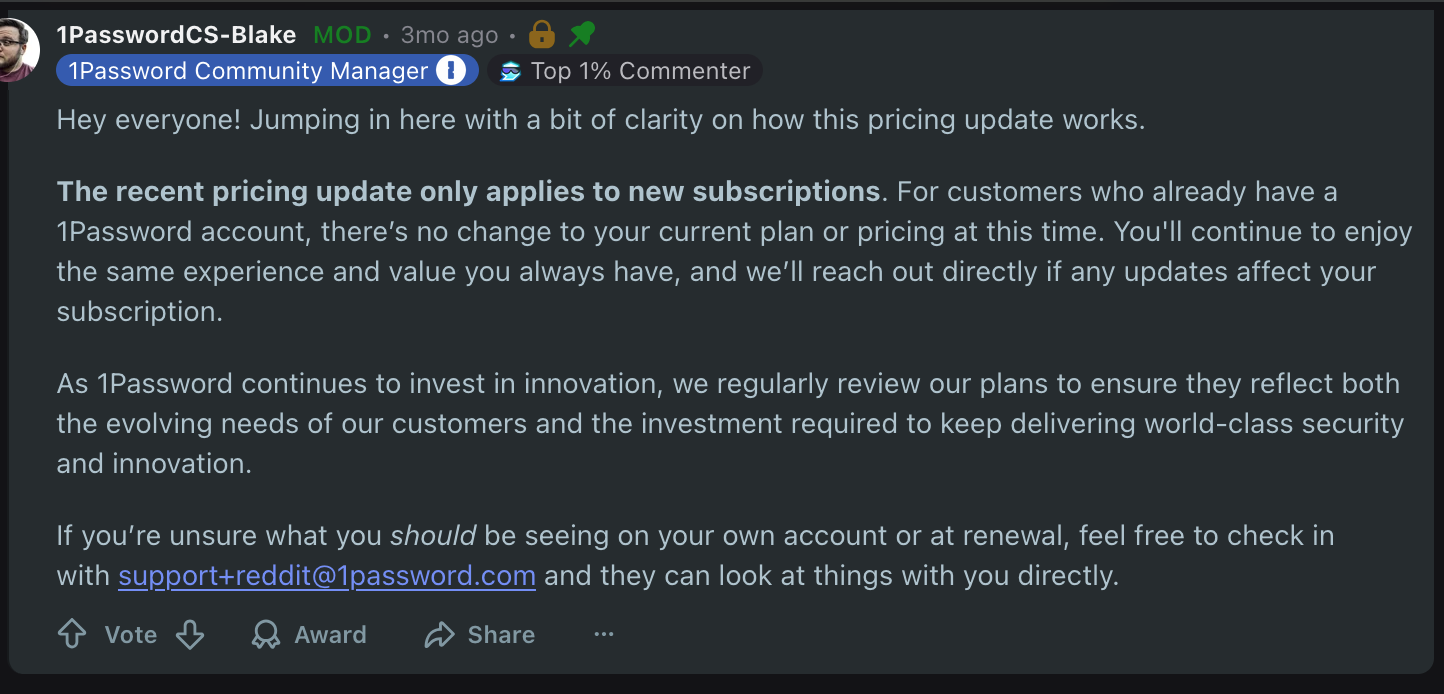 Looks like it’s about $5-$10 more annually for a family sub compared to Dashlane and Proton Pass.