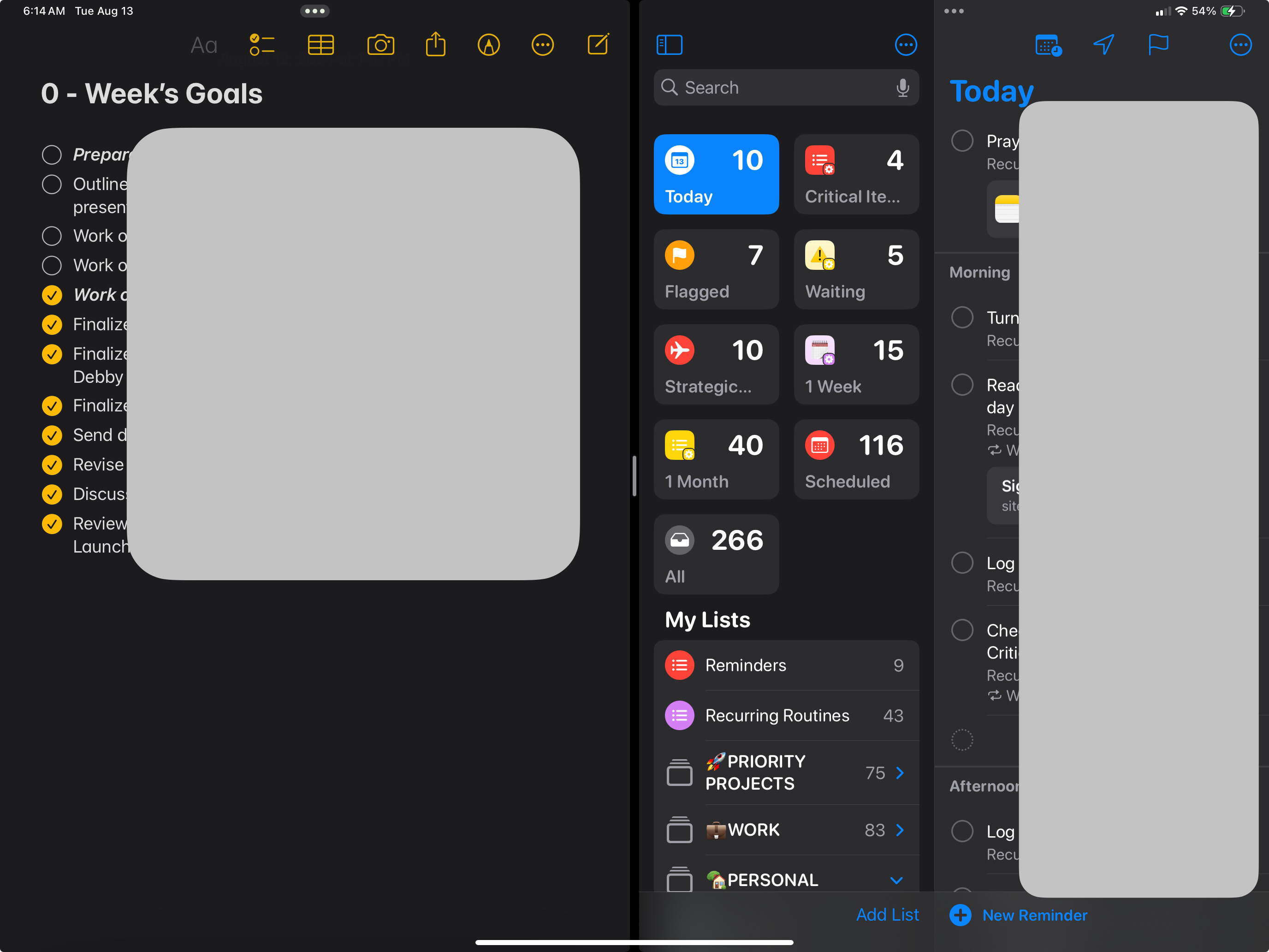 Finally, I used Reminders for the nitty-gritty of my day and projects.