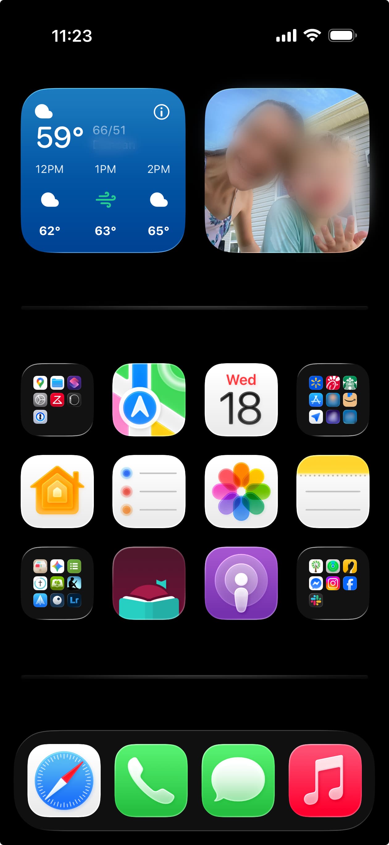 One random side quest from the episode: I agree with Davidâs preference for the larger home screen icons, but also agree with Stephen that the spacing at the bottom is (super) awkward. I decided to embrace it and leave some open space beneath my top widgets. IMO the result felt pretty balanced and purposeful (especially with the subtle lines in the wallpaper)! One bonus benefit is that limiting apps to the lower portion of the screen also helps a ton with one-hand reachability. ![]()