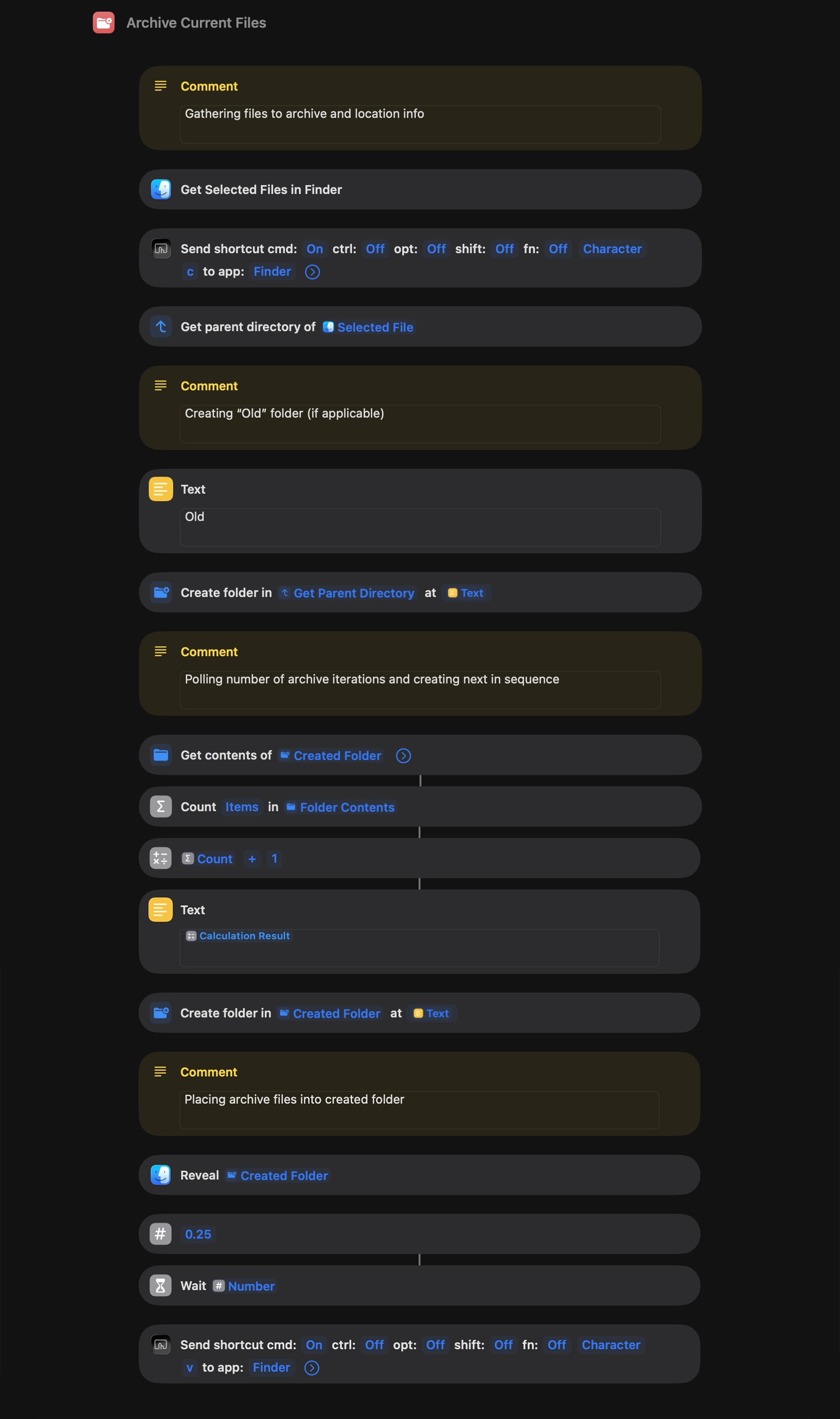 I was able to circumnavigate these issues with a bit of a clunky brute force shortcut that uses copy/paste commands enabled by BetterTouchTool. This shortcut I built a year or so ago lets me archive iterations of design files when we receive feedback from clients.