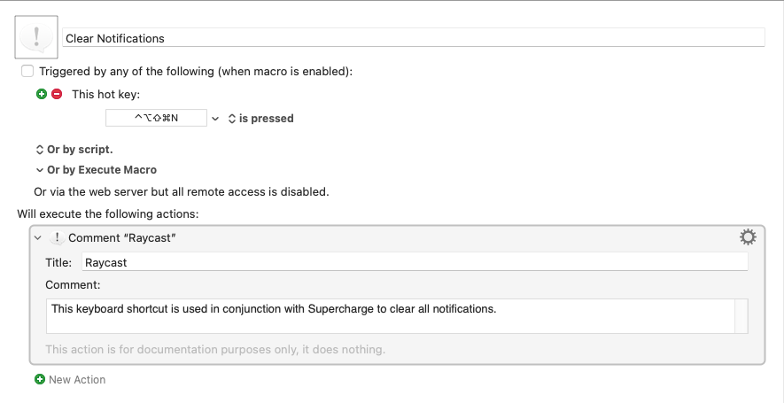 Are you making a new macro for every keyboard shortcut and each macro has only a comment action, or are you just adding a comment to existing macros? I’m trying to understand how this helps with recall and how you avoid conflicts with duplicate hot key triggers.