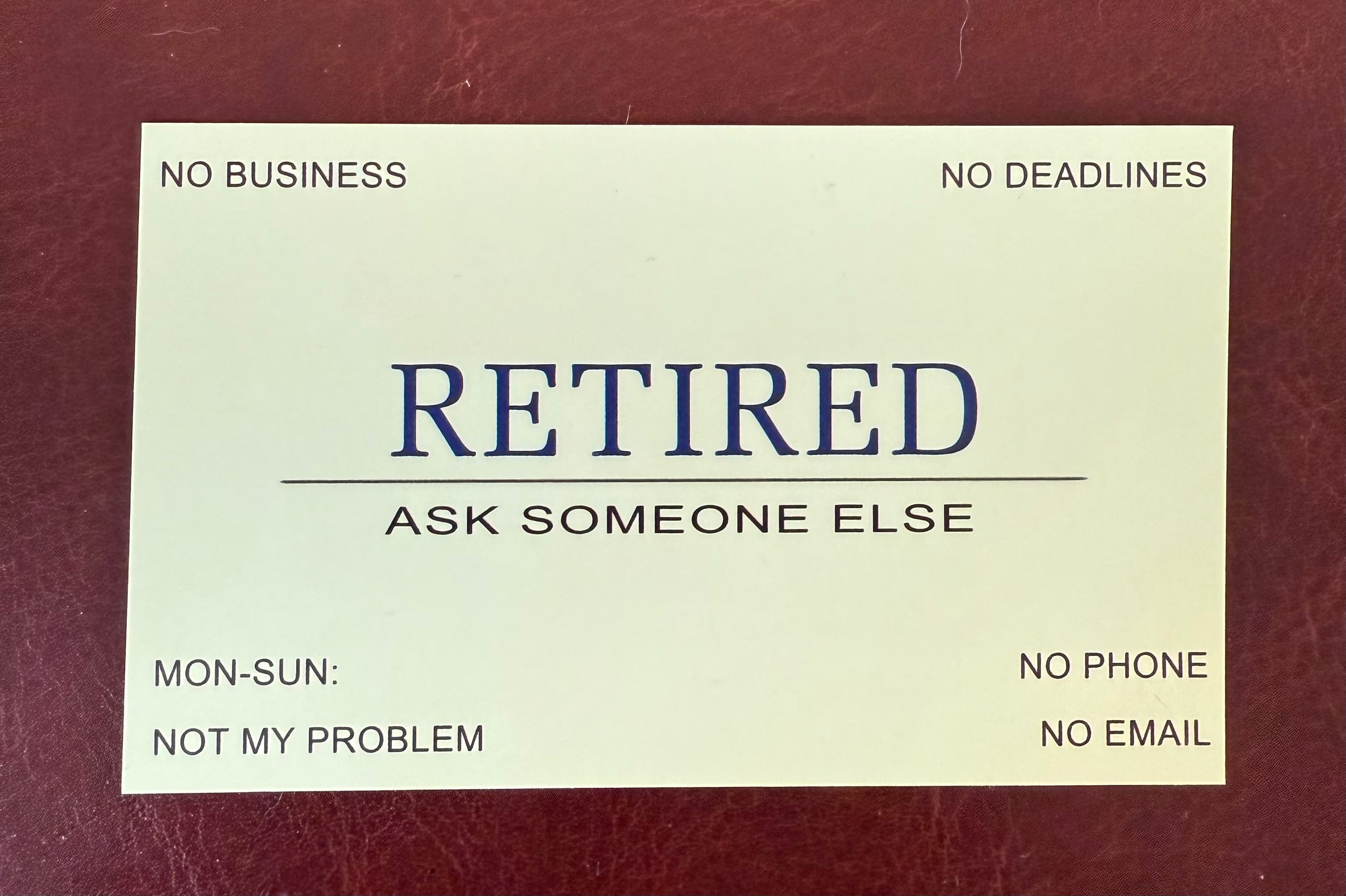 I created a QR code for my wife’s business card years ago and laminated it. Had forgotten all about it until I saw her pull it out the other day at a conference to share her details.