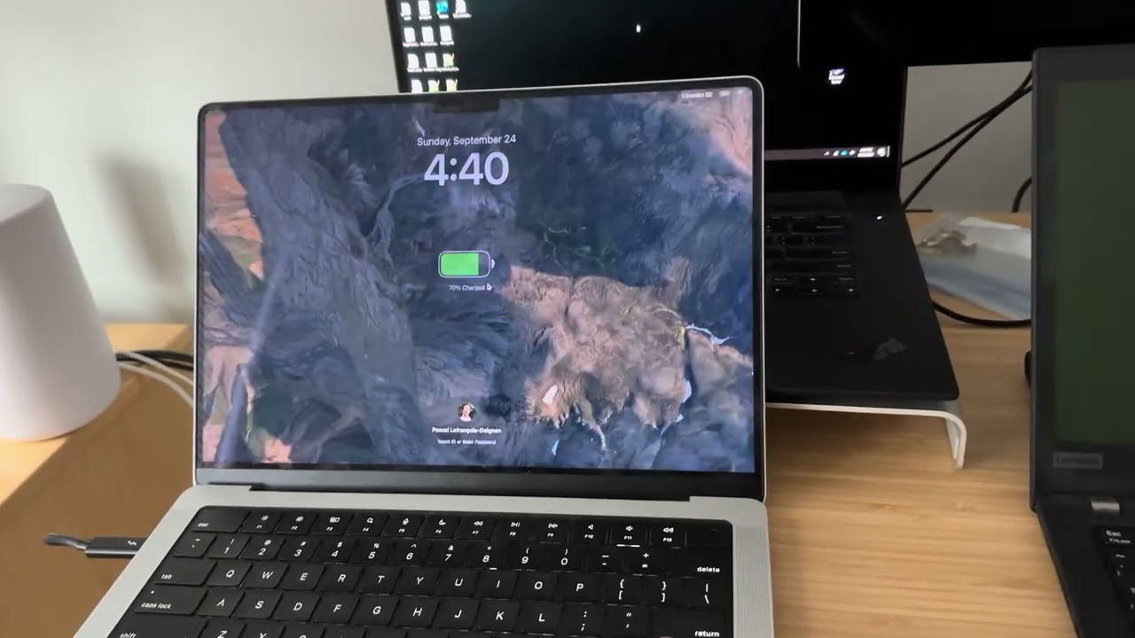 This laptop was connected to an LG UltraFiiiiine 5K display. It could be connected directly or through a work provided Lenovo Thunderbolt dock. My peripherals were all connected to the dock. The display is starting to flake out so I bought the new Studio Display hoping to be rid of the LG once and for all.