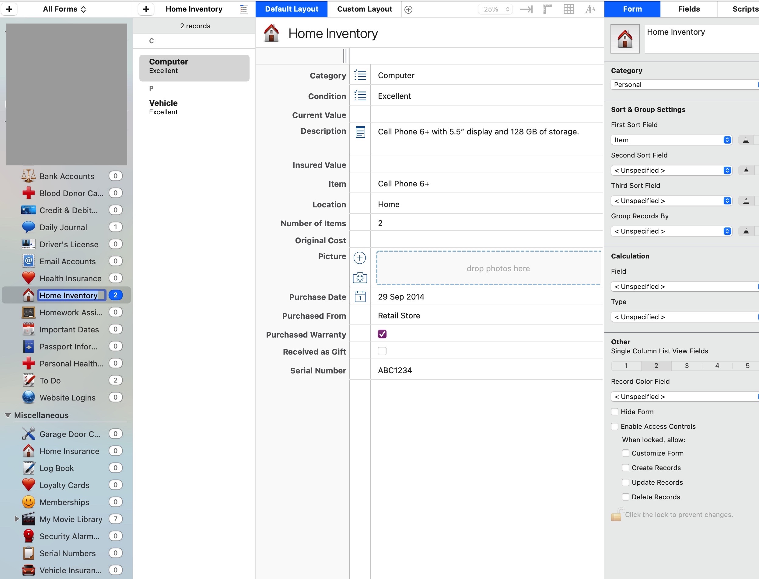 HomeInventory is actually a very good fit for me, Alan! It comes with the Set App groups which is certainly handy.