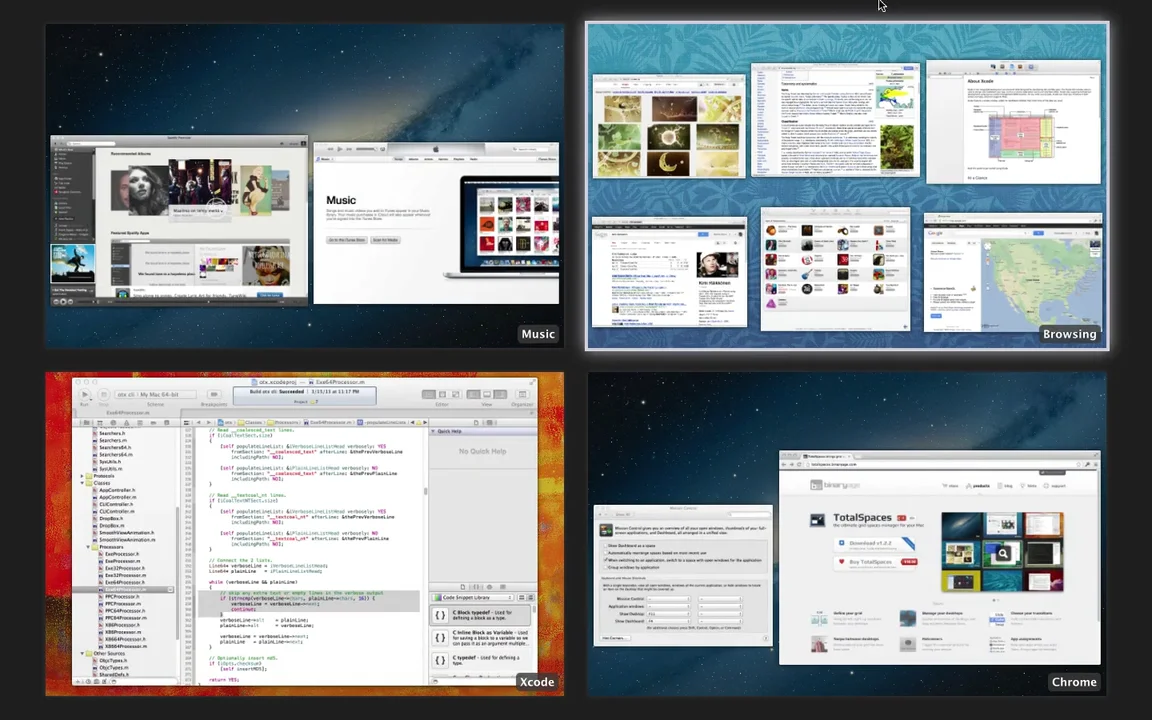 I discovered spaces before the command ‘cmd+tab’. It’s an essential part of using my computer especially since I don’t like full screen mode but also don’t like ever having overlapping windows.