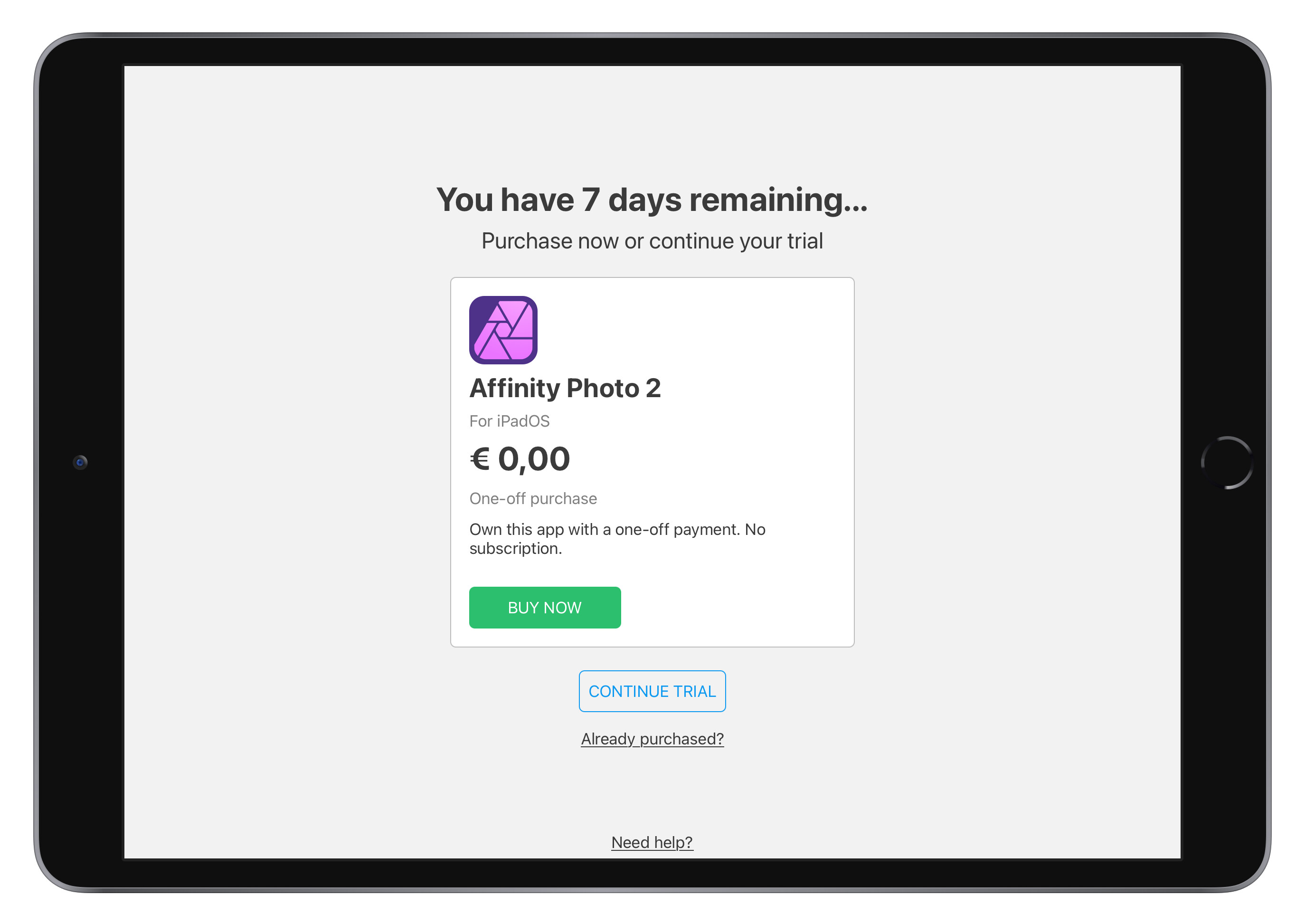 And sales are halted for the month of October. Seriously. Nobody can buy Affinity products this month. If your trial is expiring today and you want to buy, you’ll need to hold your breath until Halloween.
