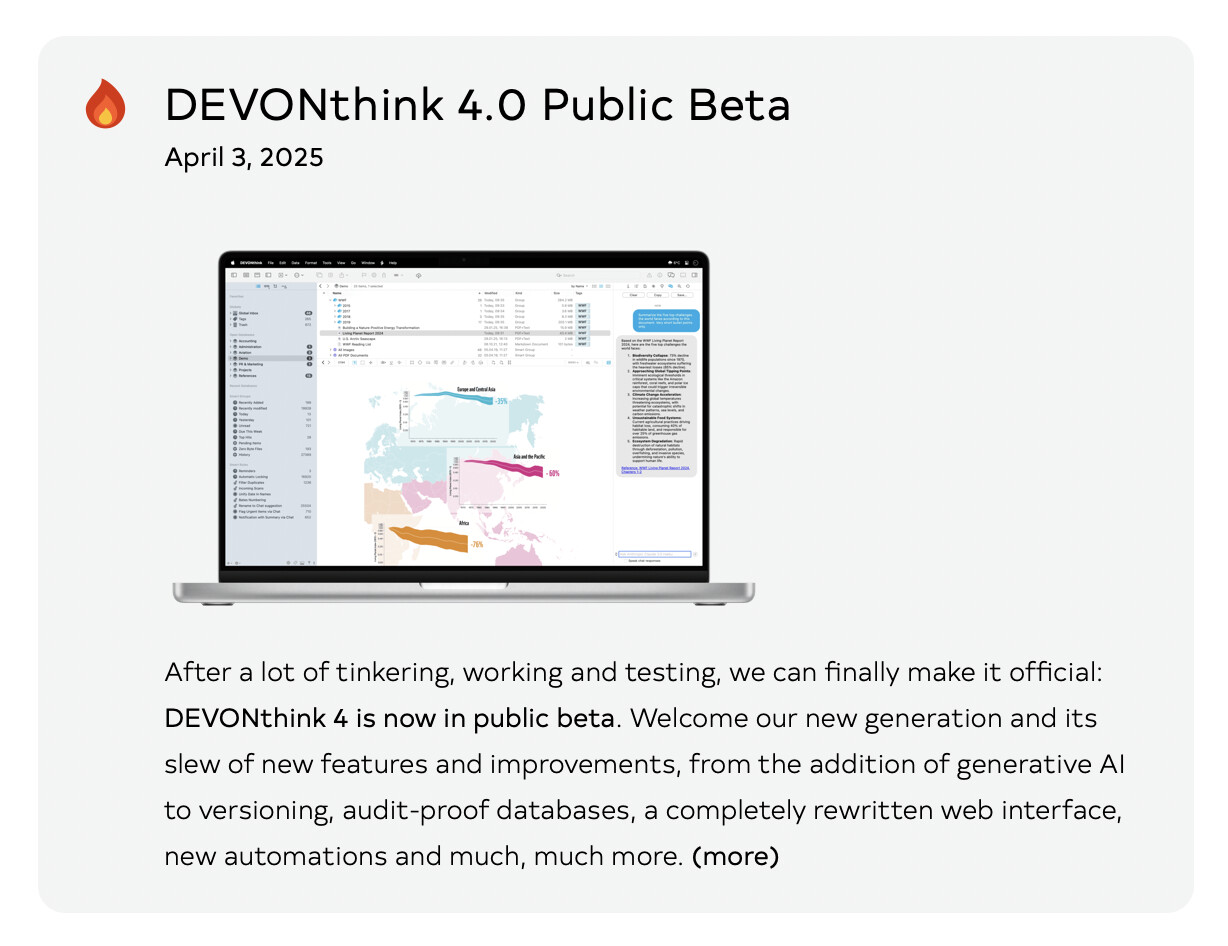 This does not mean DEVONthink is now a writing assistant. It means thereās yet another potential use case for document creation, organization, and connecting documents within or across databases). Only now, with some controlled access to external AI complementing our own AI, the possibilities have expanded.