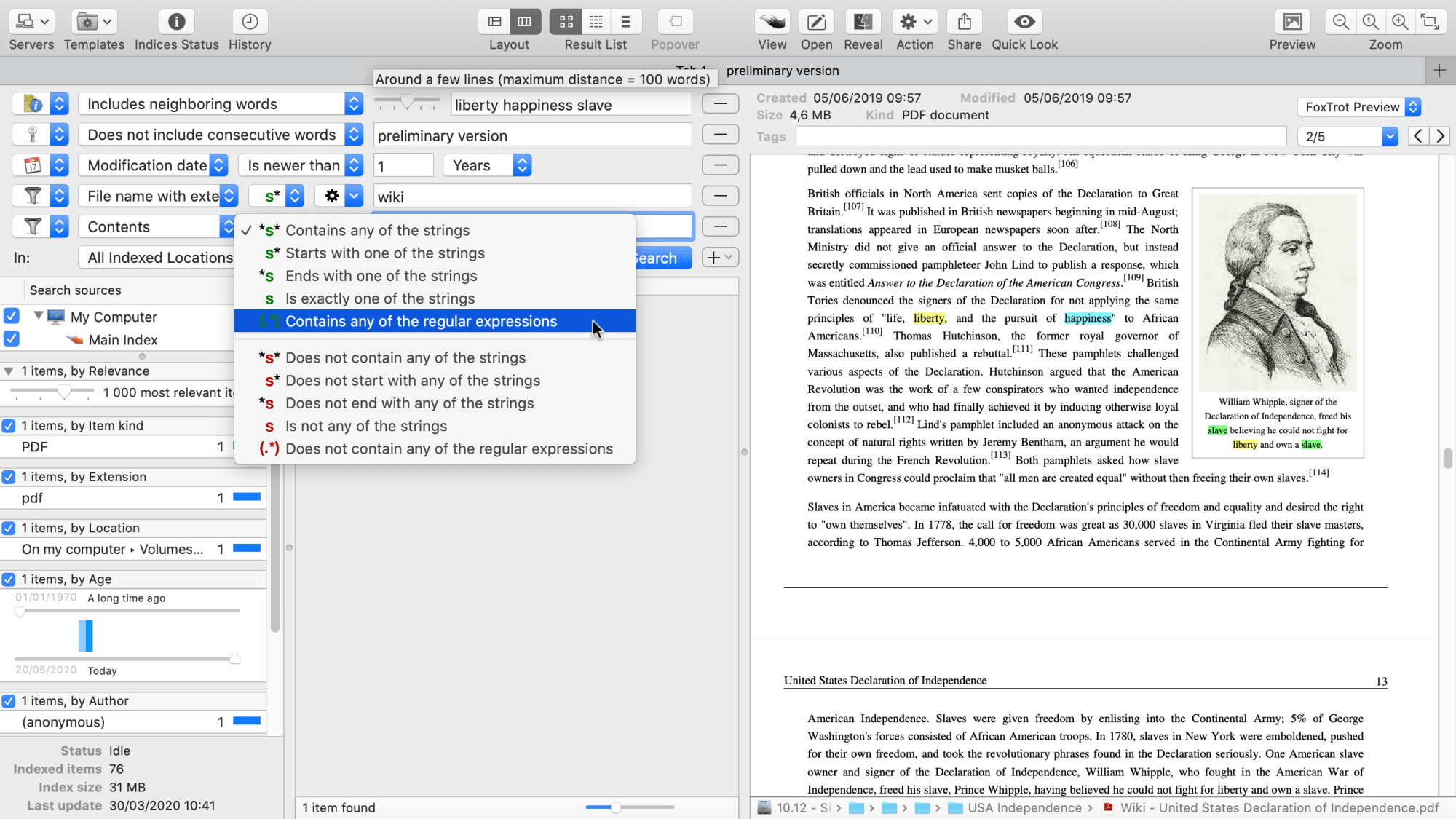 I also use HoudahSpot extensively, but I’m consistently intrigued by FoxTrot Pro, which just came out at v.7 and is compatible with Big Sur. It looks to be more powerful than HoudahSpot, while offering Devonthink-like concordance results. But the price is a prohibitive $120.