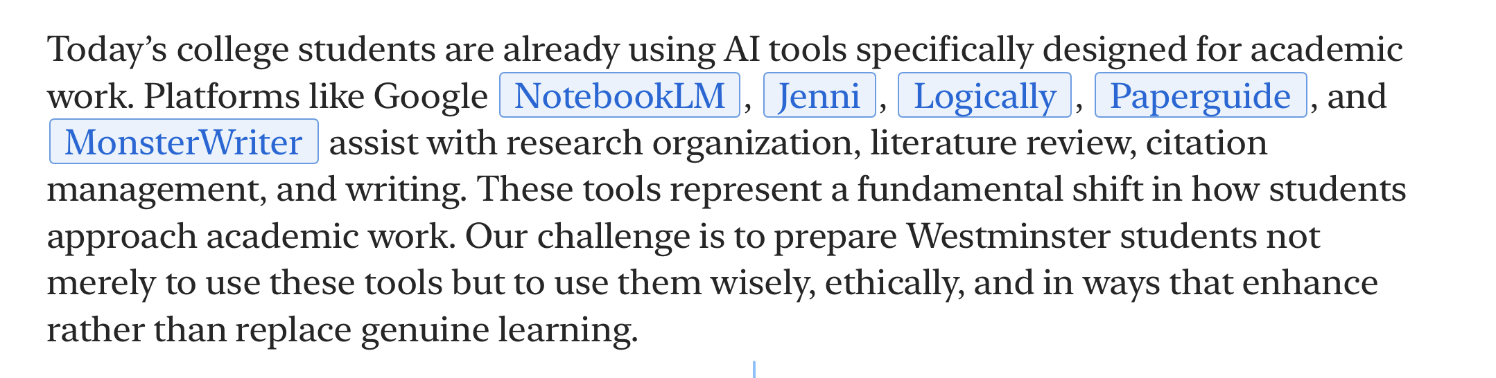 I decided to revisit the app and copied and pasted a copy of my paper on AI in education into it. I was quickly reminded of the reason why I can’t use the app for my writing.