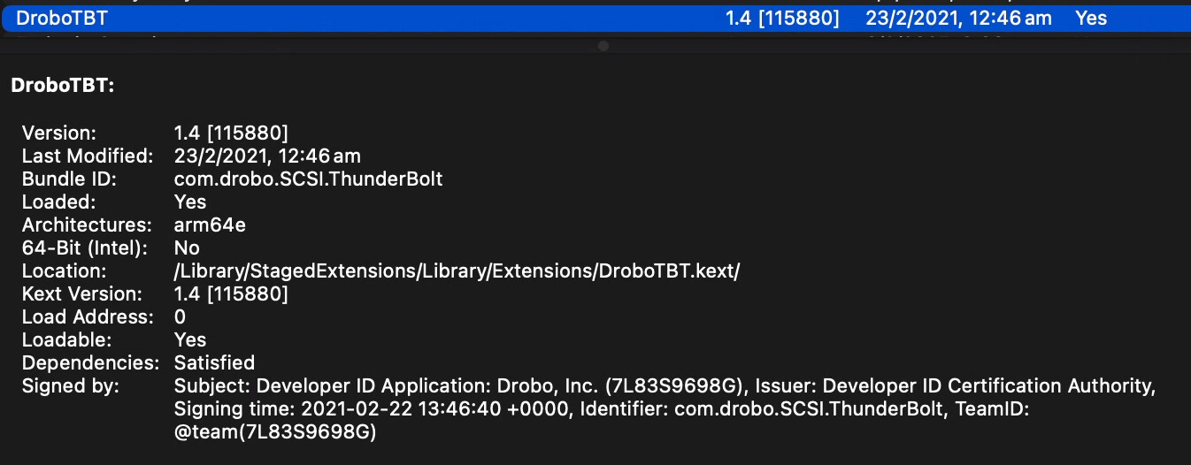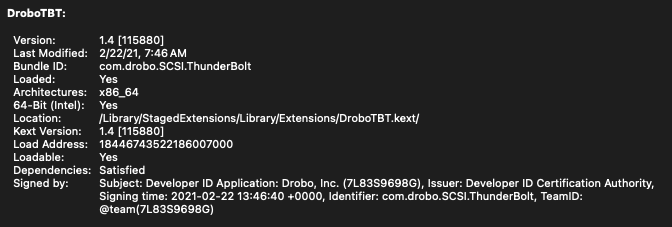 Iām also upgrading my MacStudio now to 15.4, it has the Drobo software still installed and the Kernel Extension running. Iāll see if that is still the case after the install and report back.