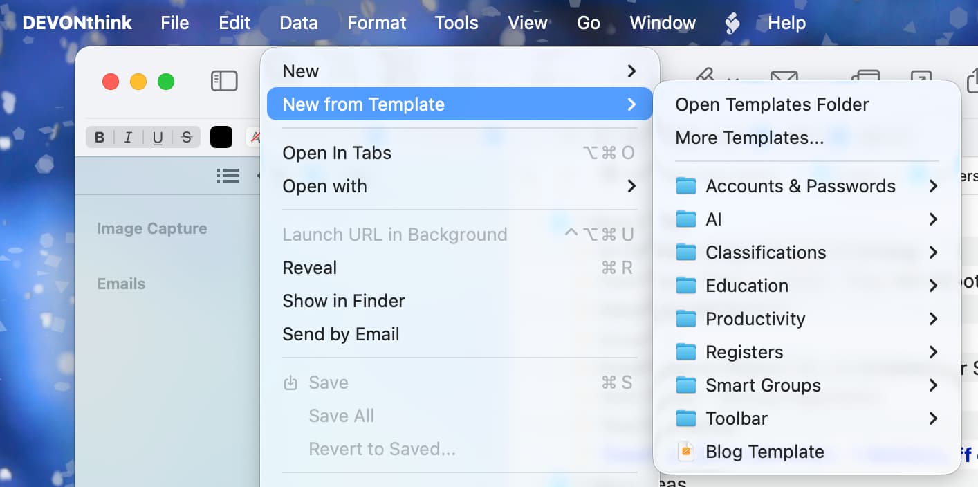 The workflow accommodates content reuse naturally. Material from one article appears in speeches. Blog content informs educational materials. Sections of articles migrate into book chapters. DEVONthink makes locating and referencing this material efficient through full-text search, tagging, and smart groups organized by theme or topic.