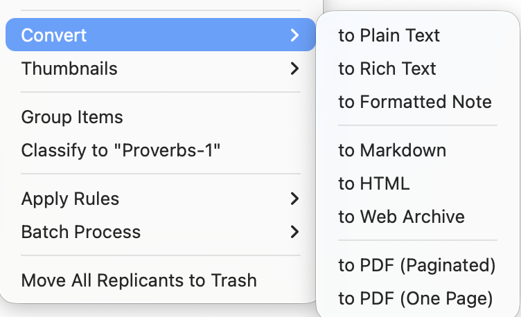 DEVONthink item links connect research sources to finished writing. When composing an article on a complex topic, I insert item links to source papers in my research database. When preparing a speech, I link to previous articles or educational materials in my writing database. These connections create a web of related content across both databases, making it simple to trace the development of ideas from initial research through multiple published pieces.