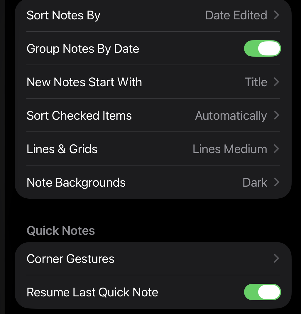 That effectively lets me treat a single Quick Note as a rolling “day note”. I can surface it instantly from my iPhone, iPad, or Mac and carry on where I left off. In practice, this has turned Quick Notes into a lightweight, cross-device daily workspace - and it’s working very well.