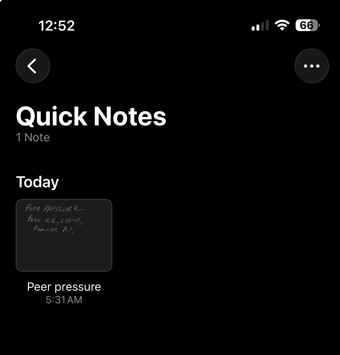 On my phone, I have two shortcuts in Control Center. One opens a note that I can write in, and the other does the same, but by clicking back, I can get a list of all of my quick notes. It’s not elegant, but it works on the phone. That said, I use quick notes primarily on my Mac and iPad. When on the phone, I capture notes primarily through dictation.