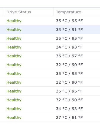 What kind of NAS is it? Does it monitor drive temperatures - if so what does it show?