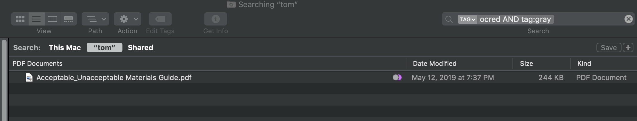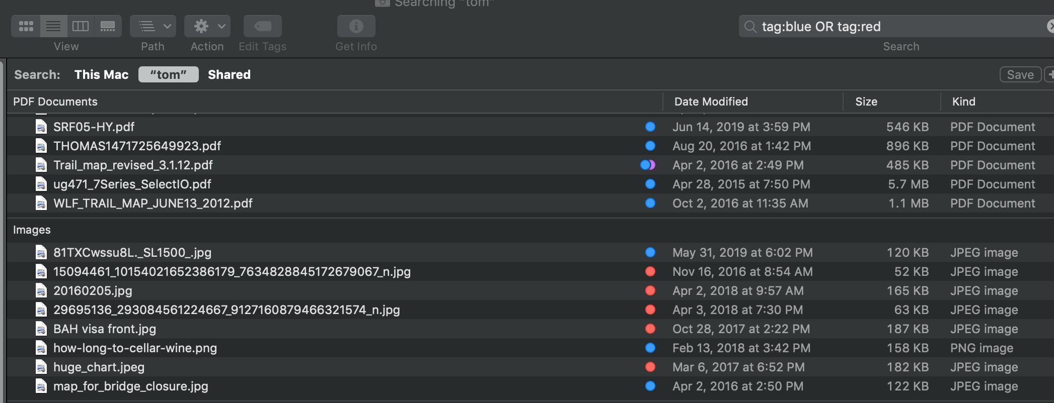 Thanks, @tomalmy: I knew about AND / OR / NOT operators in Spotlight, but I failed to mention it, so thanks for that follow-up note.