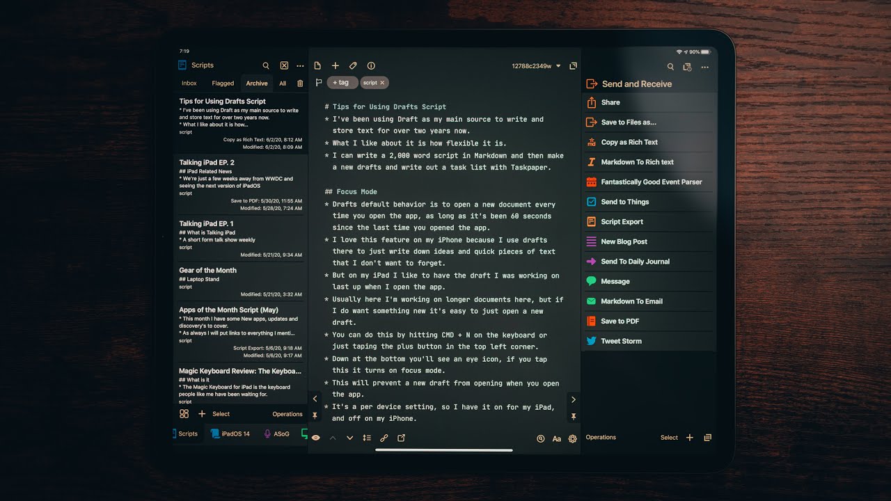 Drafts is where I do most of my âeverydayâ writing: emails, letters, memos, forum posts, quick notes, you name it. Once somethingâs writtenâor at least well begunâI export it to wherever it needs to go using one of Draftsâ myriad Actions.