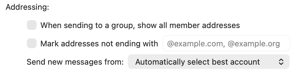 In both cases, the default-account preference is being overridden based on context or the mailbox I last viewed. As a result, I have to manually correct the “From” field every time I compose a message to ensure the correct account is used.