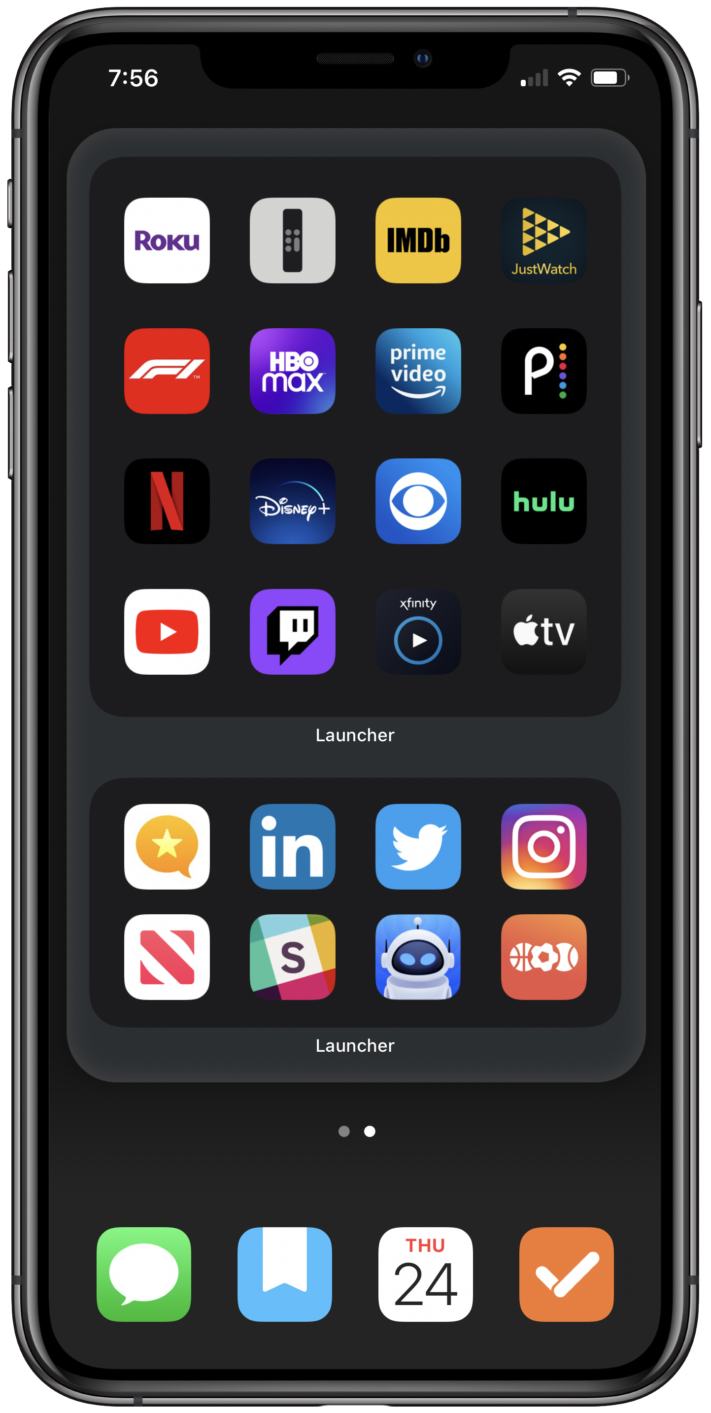 Each are stacked widgets, so I’m using them almost like a folder. I can see the more apps, easily flick one handed without much effort. Been working really well so far.