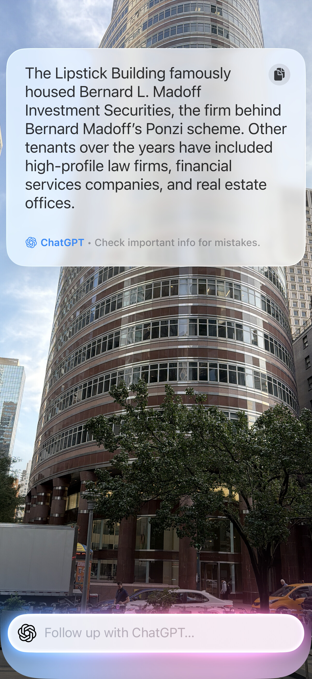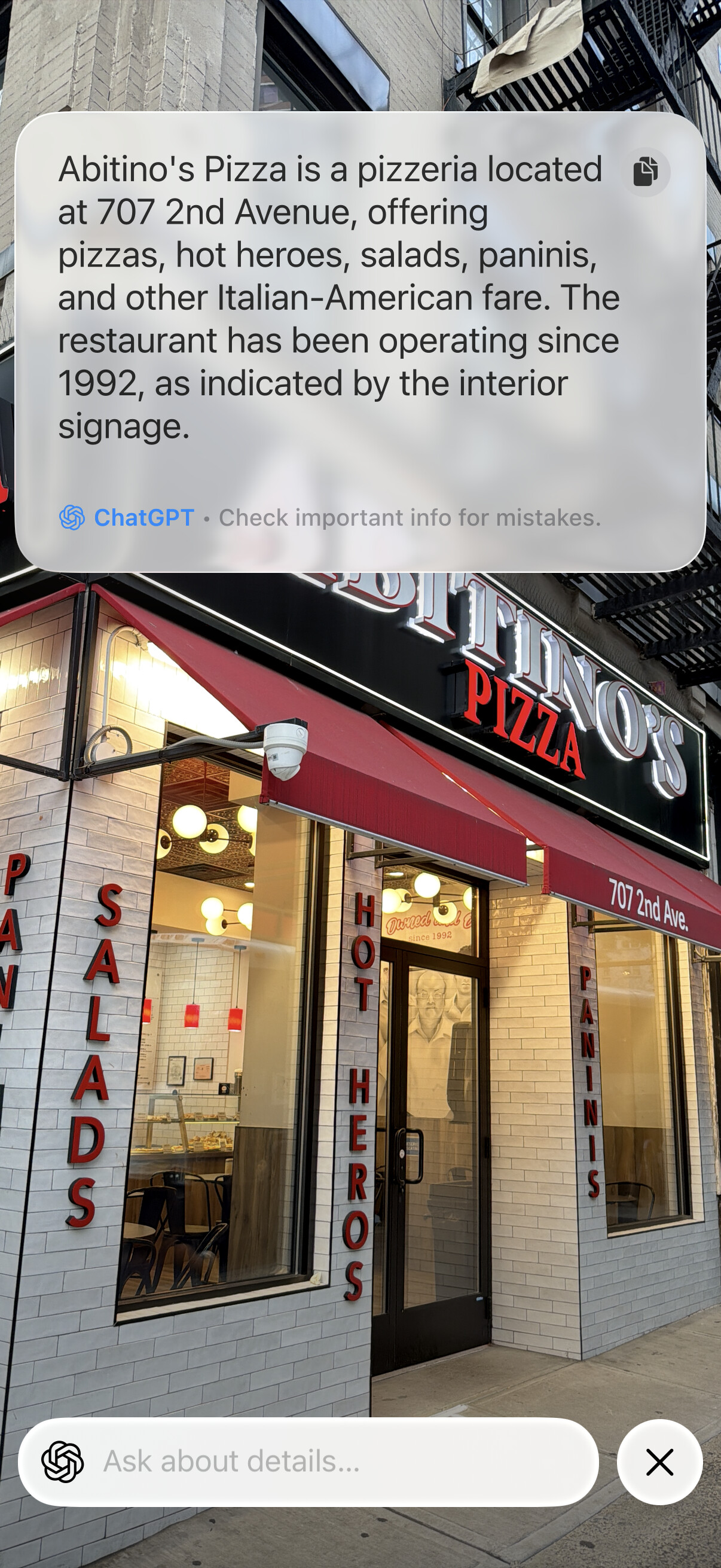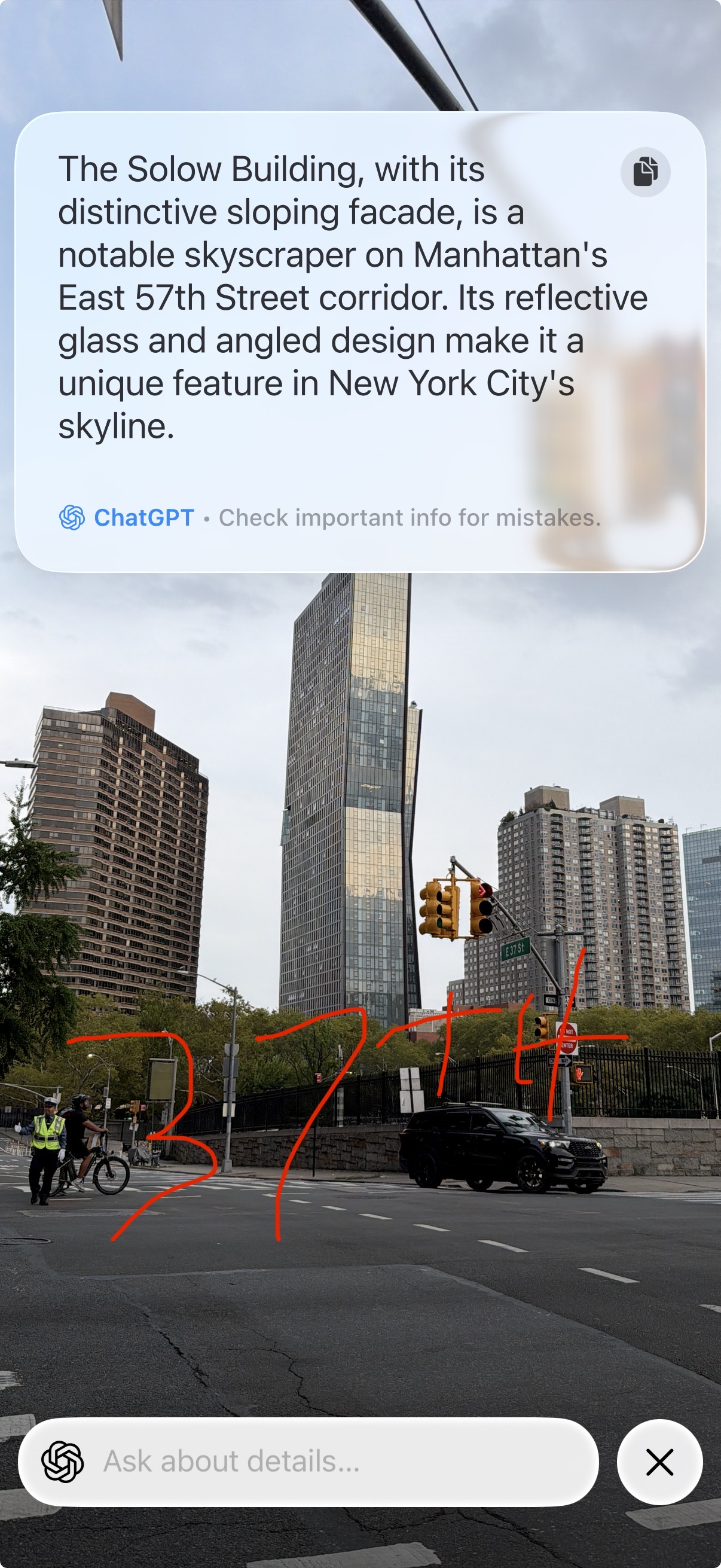 Another thing I’m loving is Visual Intelligence. I know this isn’t new, but I didn’t really use it until now. I walked around NYC and was using it to try to identify the different buildings. Sometimes it was able to, other times it would just give a generic description of the building because it didn’t know what it was.