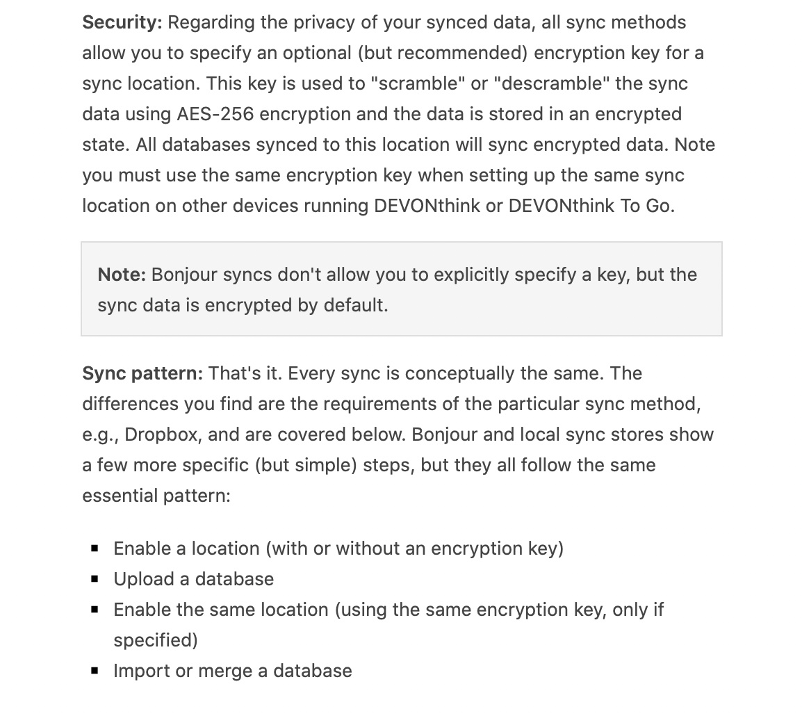 Bear in mind that Devonthink it is not a “always on” sync (a la dropbox), but it is performed only when (and if) the app is open.
