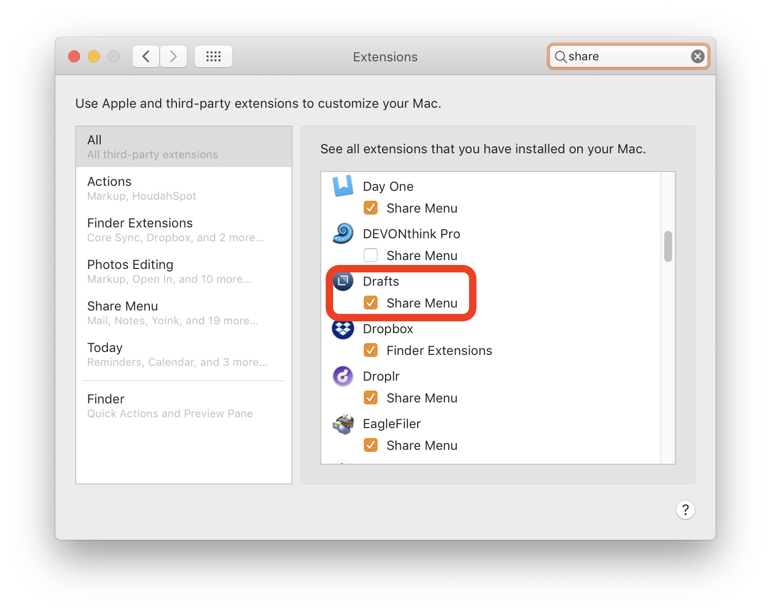 Hello, newbie here. I have installed draft on a new MacBook, but I am unable to see it in the share sheet. This is weird because it shows up on my old Macbook air. Any tips? I went in the system preference extension and Draft does not show up as an option. thank you.
