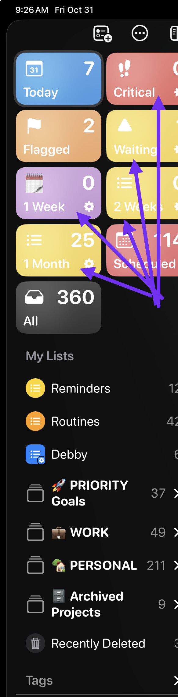 But I’m also very distracted/annoyed by long task lists - which is easily solved in OF … so I need to find the best way of doing this.