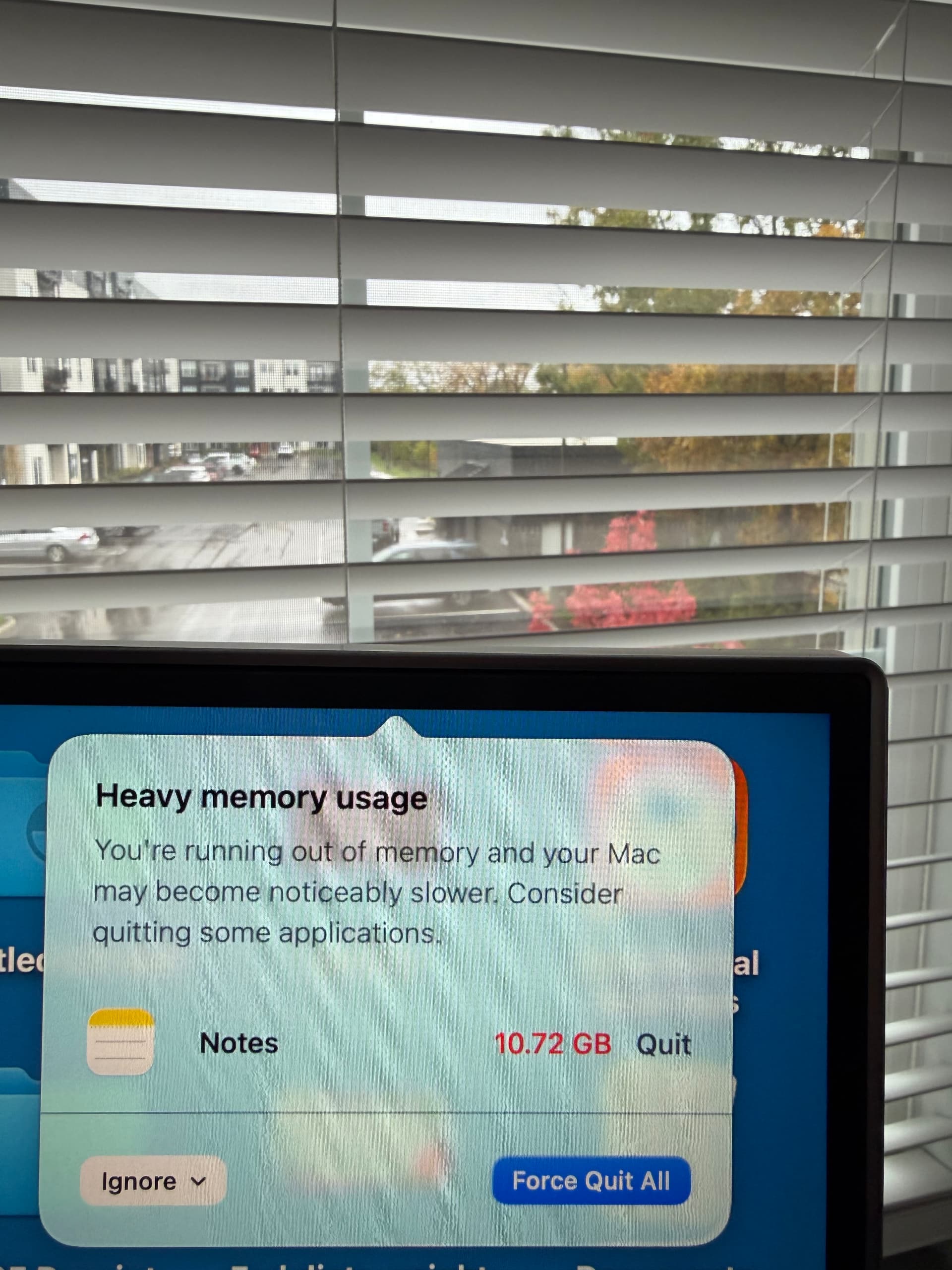 I’ve been using the Notes app to keep track of things including some notes with multiple pictures attached. This has made my Notes app challenge the memory on my devices when it is open, especially MacOS. Has anyone else run across this? Is my only option to archive some of the notes, which would make them less accessible.