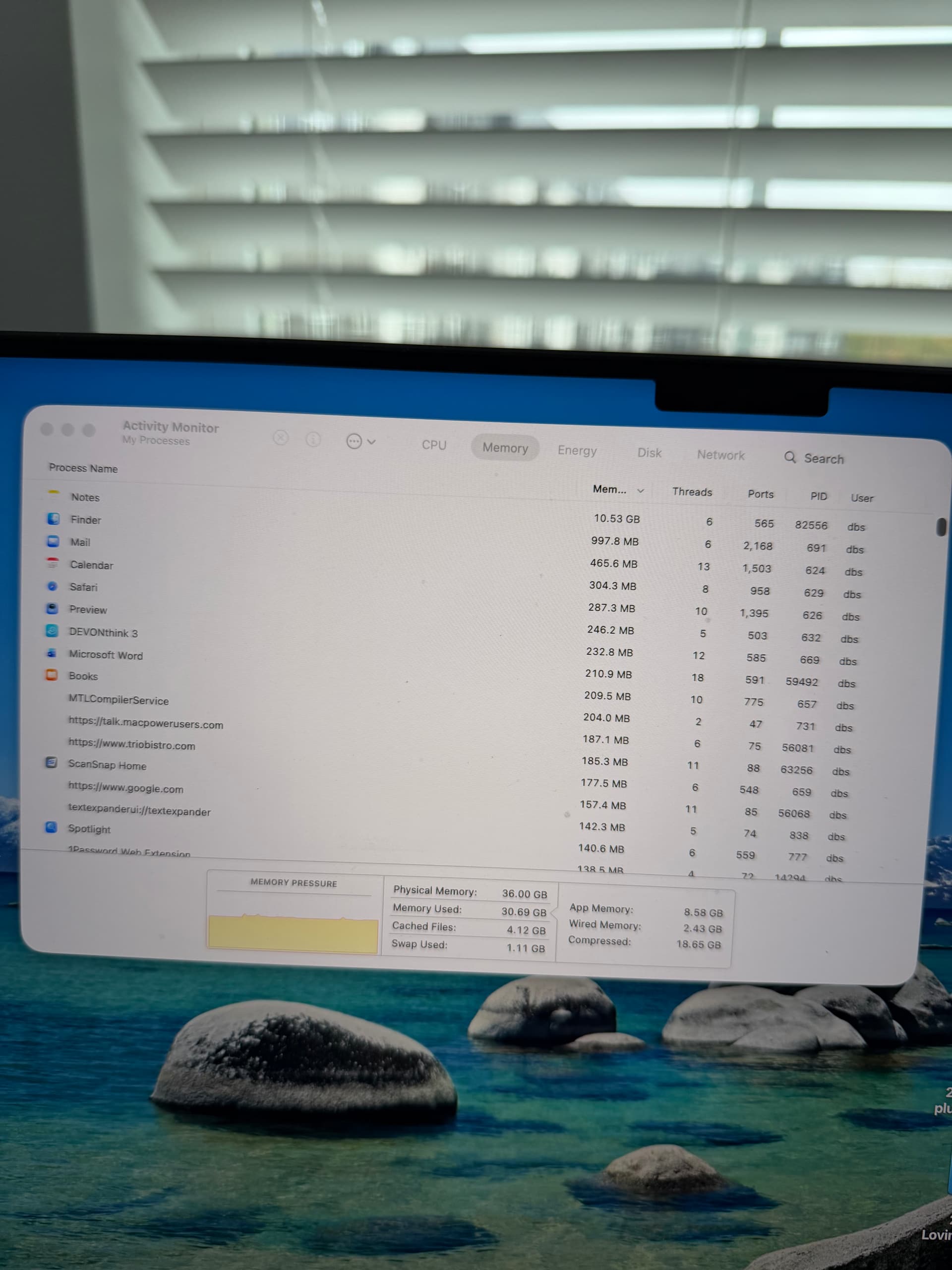 I have re-booted my laptop and will take a look later. So far I haven’t received more memory warnings, but is using over 31 of the 36 GB’s. I may need to take a trip to the Genius Bar.