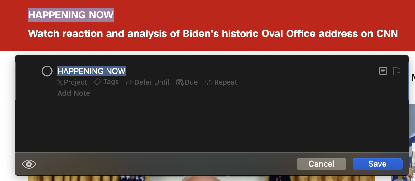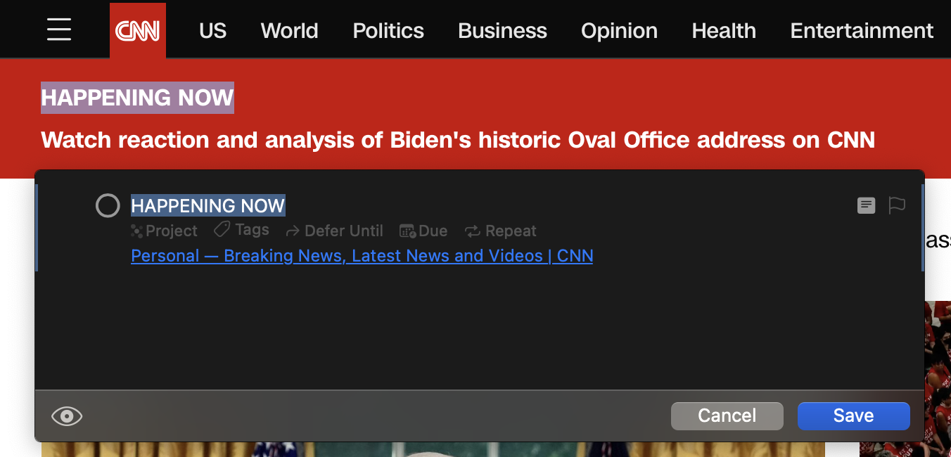 The only thing I’m missing is a way to capture from ClickUp into OmniFocus. My team uses ClickUp and in Things I’m able to select the title of a task in ClickUp and from the services menu I can select ‘Add to Things’ and it will capture both the title and a link back to it. OmniFocus seems to only capture the title and not a link back to the original item. I might be mistaken but I’m sure there was a way to do this.