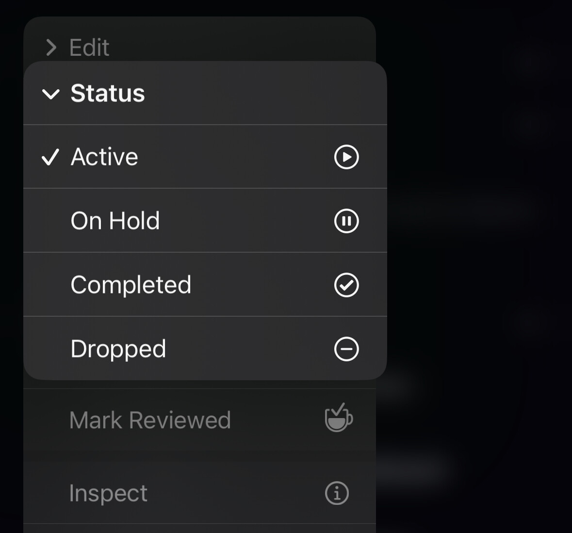 I’m trying to resist the call back to OmniFocus. I used it for over 10 years before moving to Things where I’ve been for a few years. I love the design of Things, but I miss the ability to put a project on hold and have it hidden from view, but I always knew that it would come back to me at some point during the weekly review with the review feature. My ritual of reviewing projects on a Sunday afternoon has rather fell by the wayside since I moved to Things as there is no badge count to tell me that I have items that have come up for review. The release of OF4 has also had me looking at the stock Reminders app again too. It’s so close to being something that I could also move to, it excels at capture and as a visual person I love that they’ve added the board view, but no defer date kills it for me at the moment.
