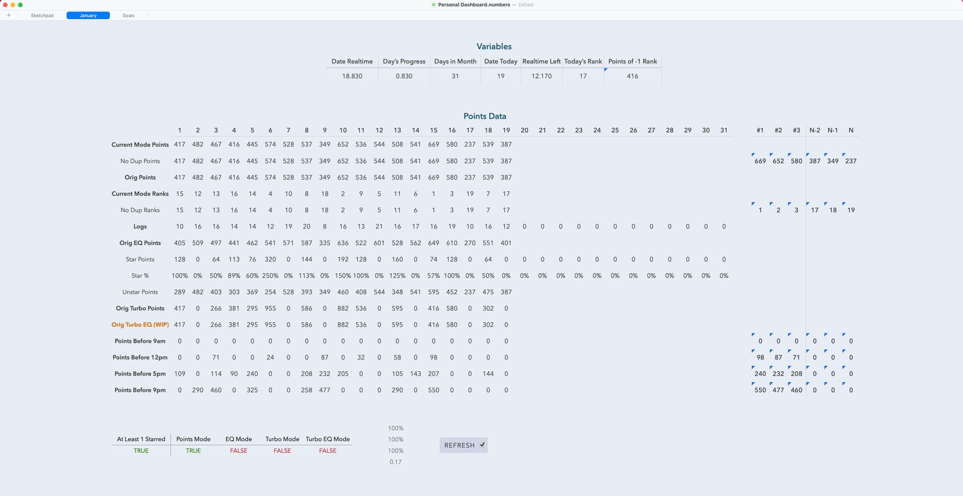 If you look at the right sidebar on the goals sheet, I have a dozen filters based on time of the day, category of activity, done status of the activity, importance, etc. That helps me feel less overwhelmed.