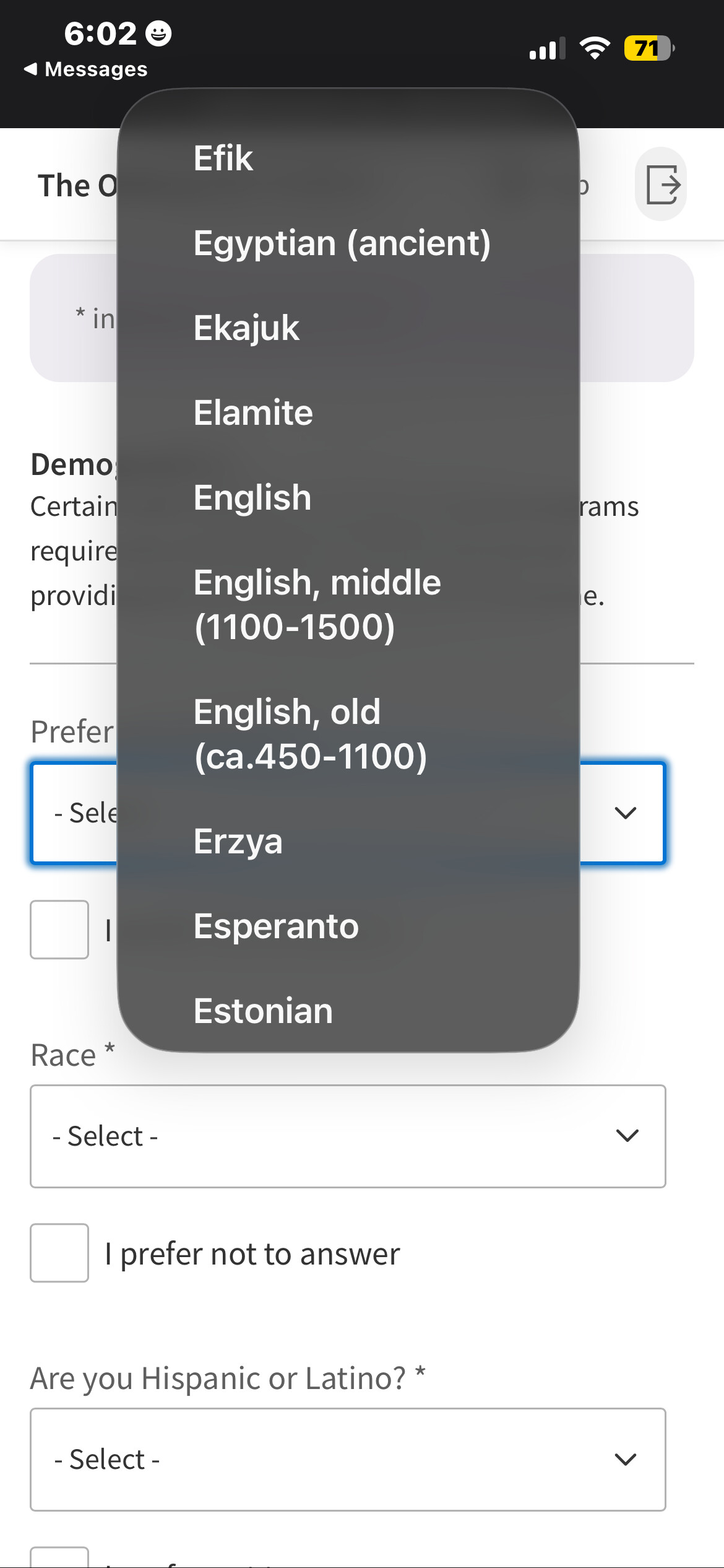 “Esperanto” is actually an interesting option. I realize there are people who speak it, but my understanding is that it’s not anybody’s first language. I’m wondering how many people prefer it to their native language, enough so that it’s relevant on a medical form?