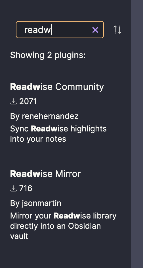 I’ve decided to give Readwise a 30 day trial in connection with Obsidian. When I searched for the Obsidian Readwise community plugin, I found two.