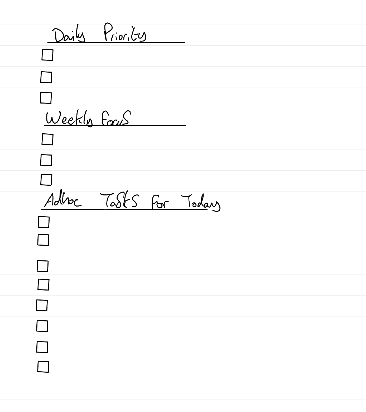 For a while I’ve been a fan of closing out today and planning out tomorrow’s workload the day before (my daily review), and before the reMarkable, this happened in Obsidian, meeting notes were taken in Obsidian, either in my daily note or in a backlinked note. But I’d always have a pad of paper by my side to remind me to phone someone back or to make a note about something I needed to do when in the middle of something else.