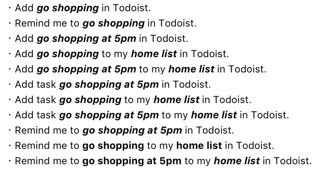 WRT Todoist Siri understand tasks, items and lists (but not projects) and can understand commands like