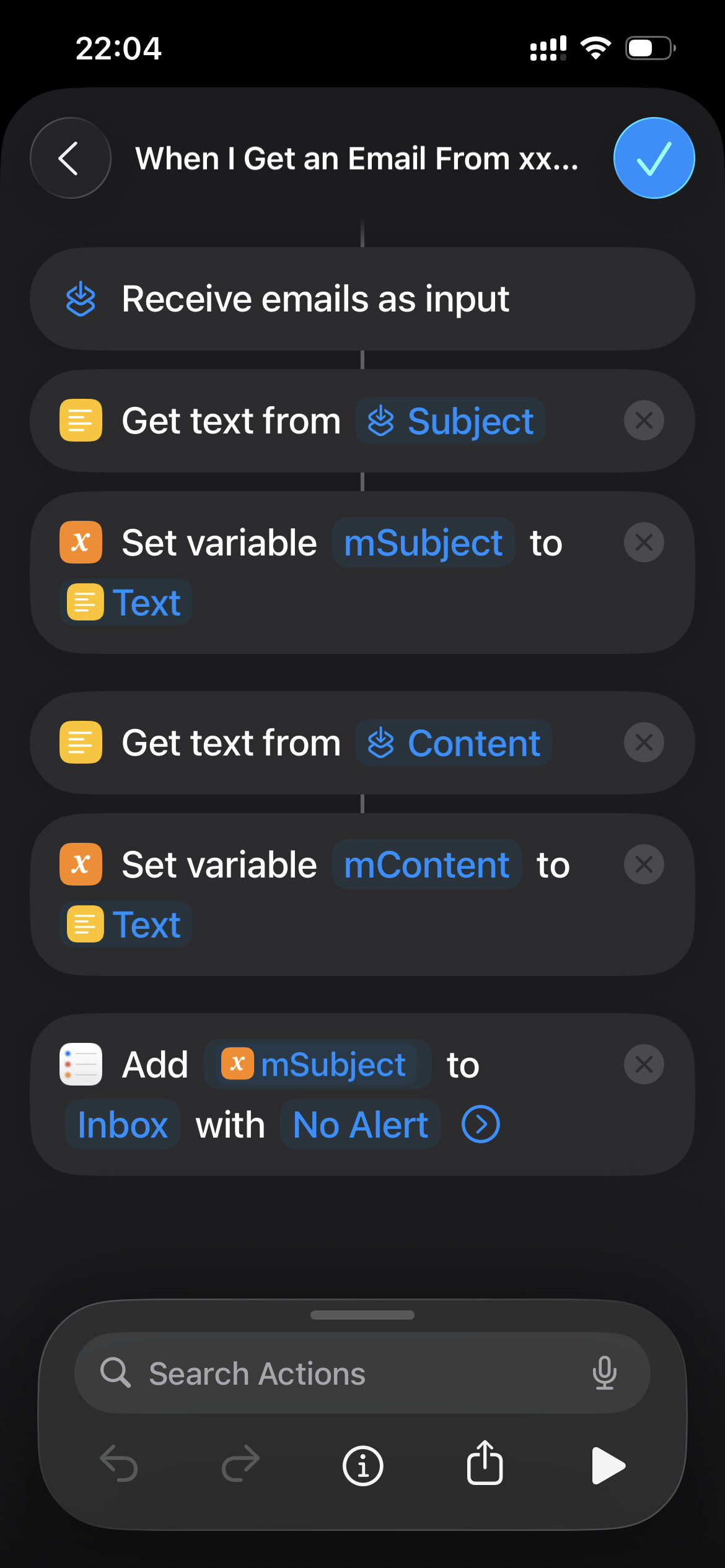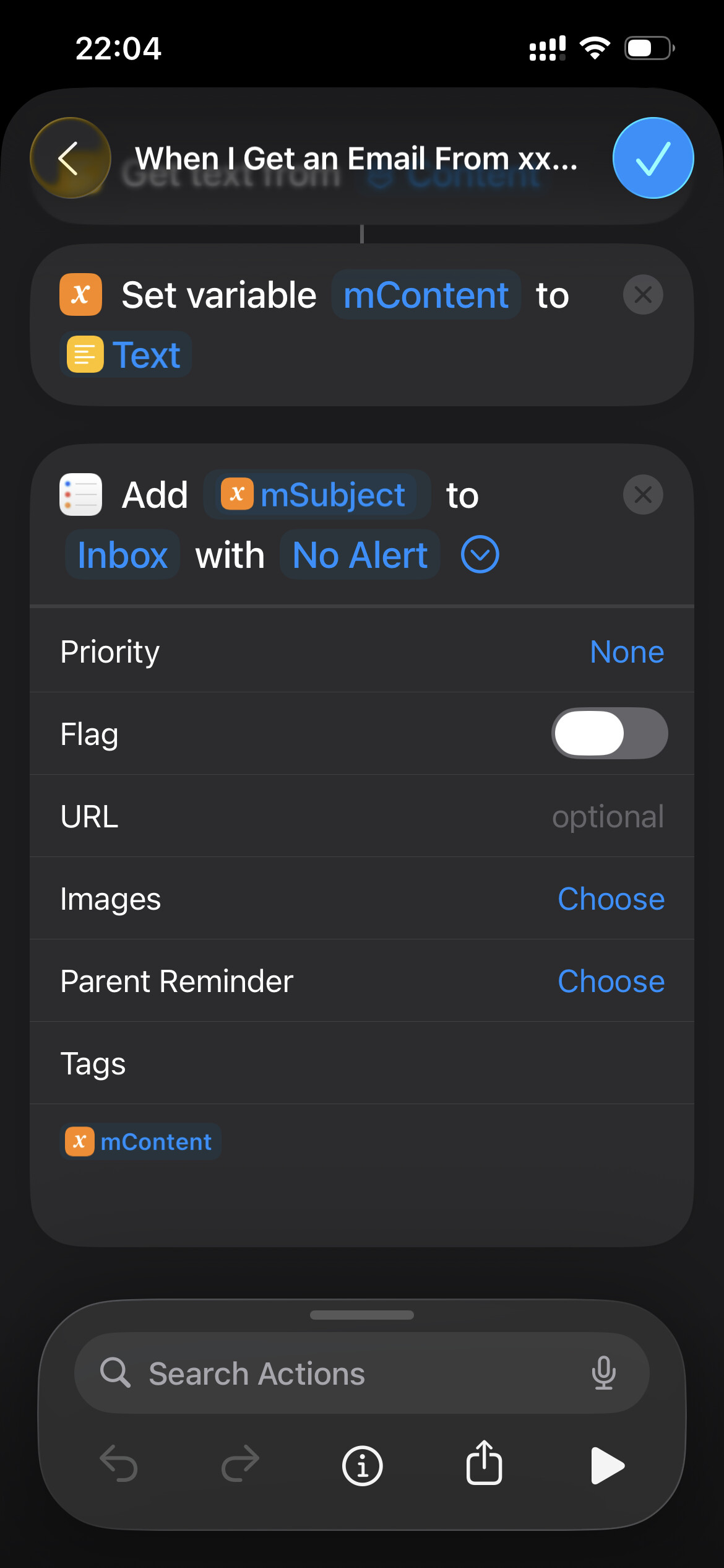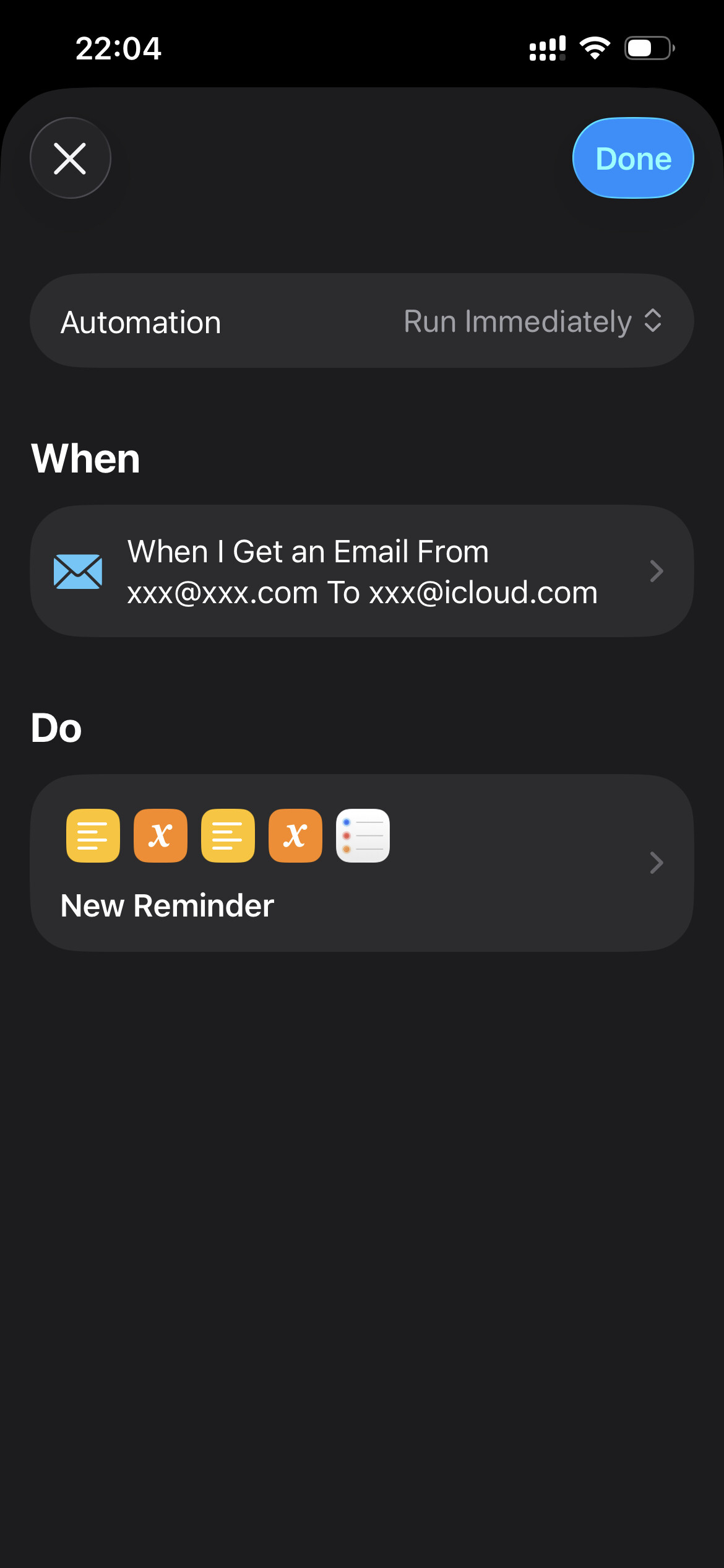Setting up a Shortcuts automation – so any email sent to your alias becomes a reminder automatically. (Screenshots included below!)