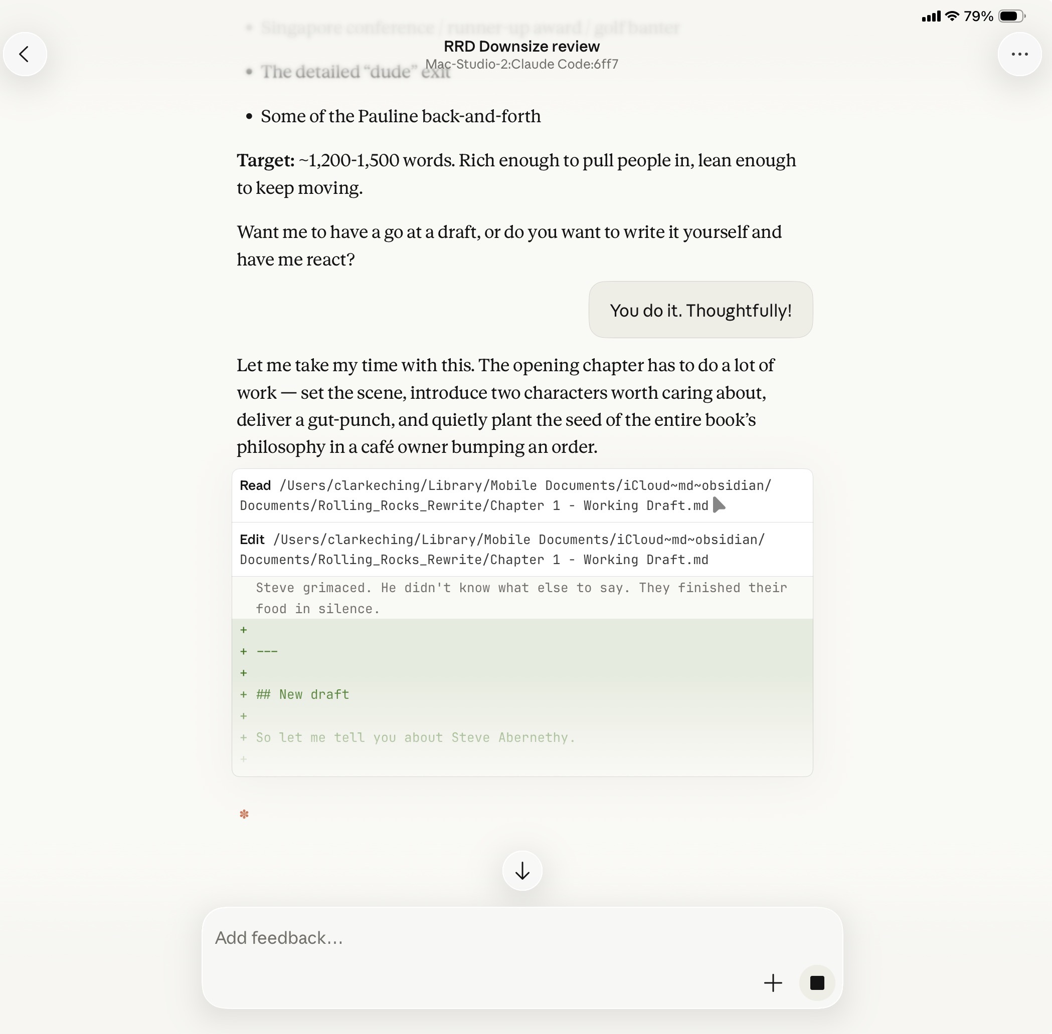 The text of the full version, and the new condensed version, are in .md files, sitting in an icloud Obsidian vault. I’m reading the obsidian files on my iPad, using obsidian, and Claude is working on the text files on the MacStudio.