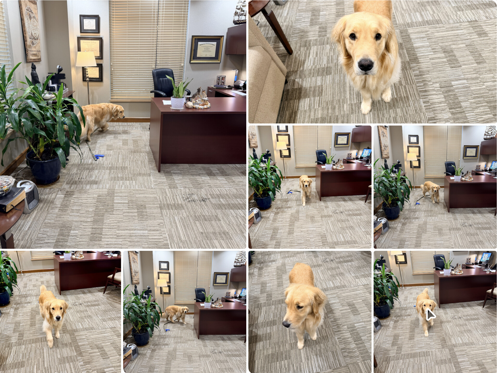 While working in the office on my couch typing on the iPad, our school therapy dog, Maggie, walked in. Iโm wondering if she knows something I donโt?