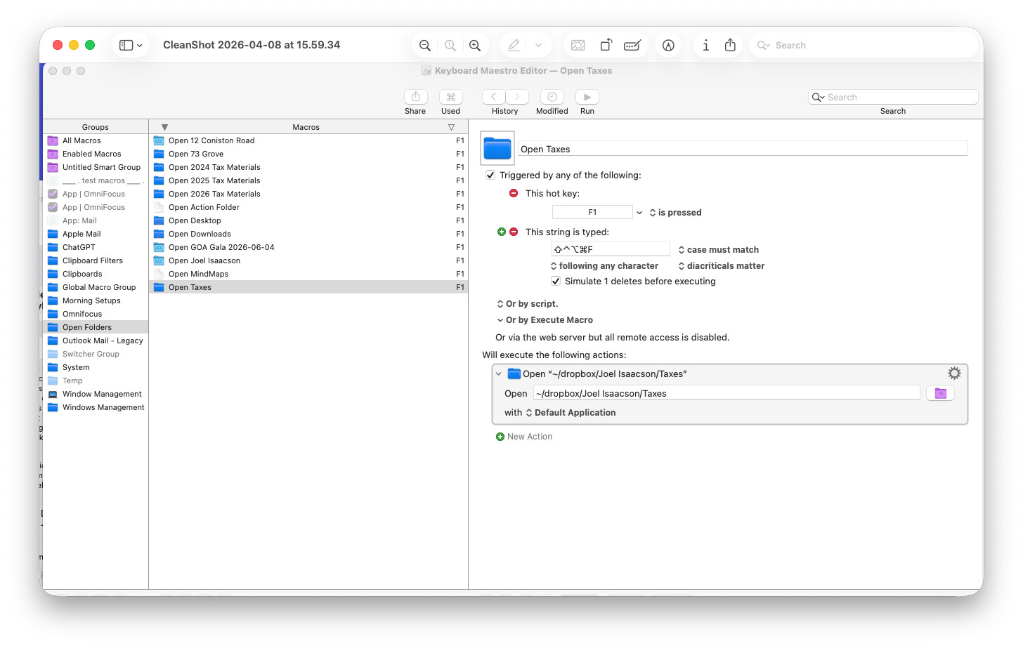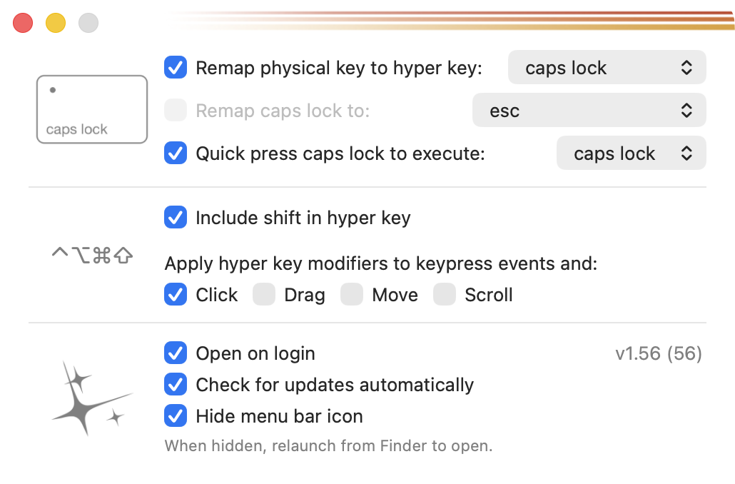 Also, in KM, you may need to create the hotkey “manually” by literally pressing the actual ⇧ ⌃ ⌥ ⌘ keys. Once in a while, when I try to record the hotkey with the caps lock, it doesn’t pick up all the modifier keys.