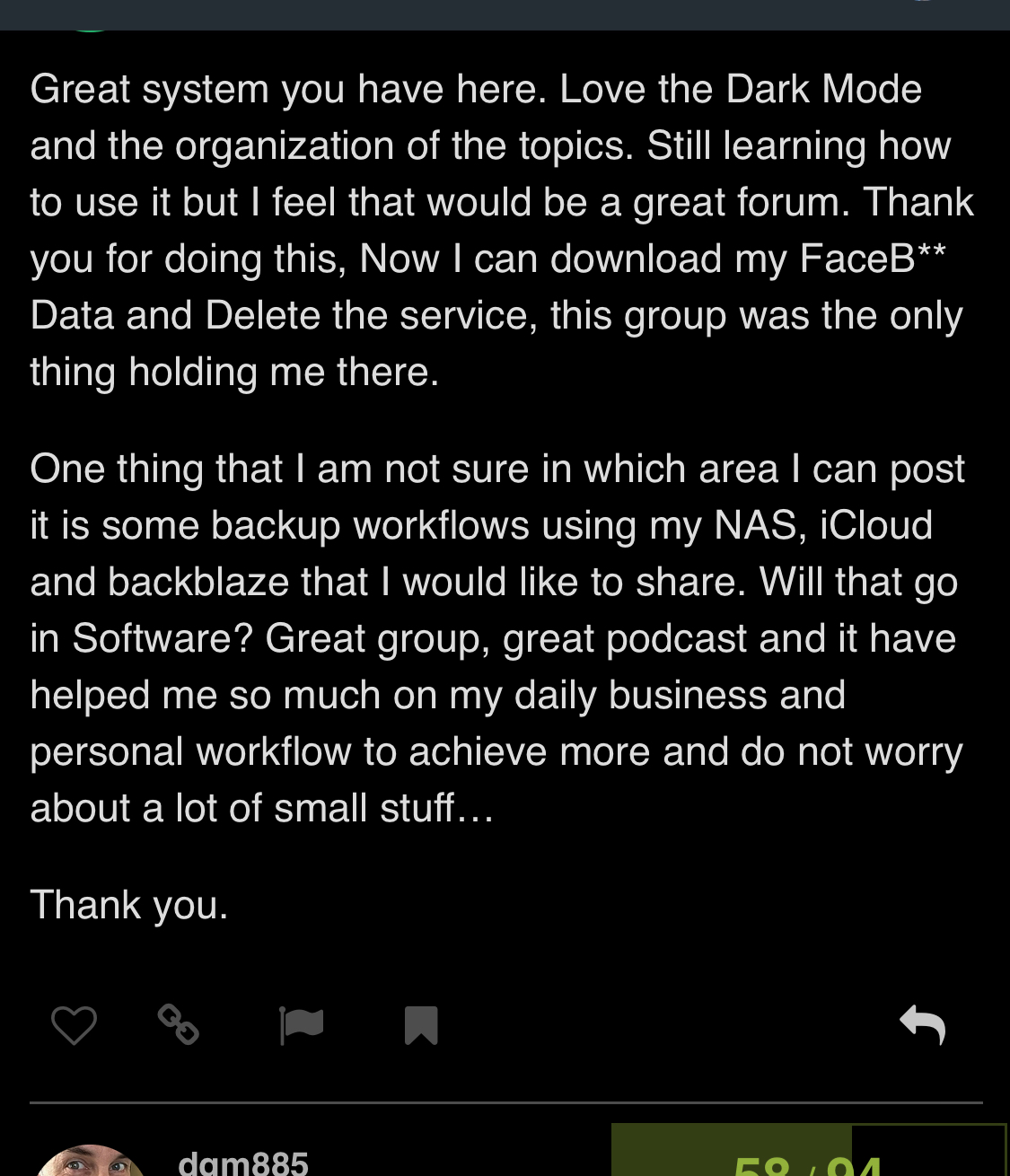 Great that we can now have a small community (not on Facebook). Great move guys!