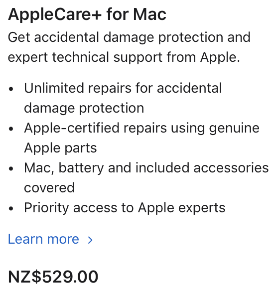 10 years ago? that doesn’t really apply to the M series Airs, which are easily 6 - 8 year machines at the minimum. I will give Apple the equivalent of 23 starbucks coffees a year to not care if something happens to it…
