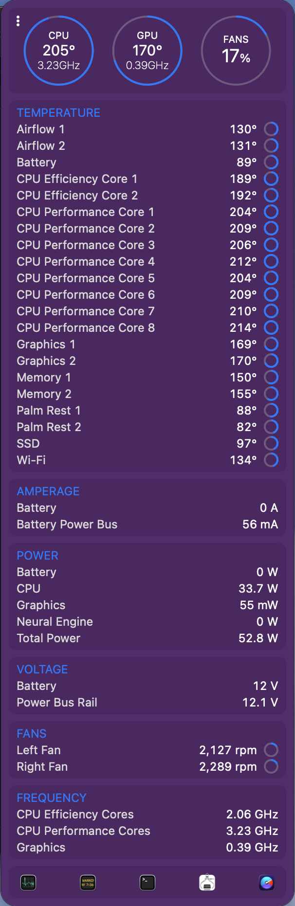 On the top end of what I use it for, and right now coincidentally, I am Handbraking hundreds of MOD files from an old digital videocamera. It is absolutely plowing through them while matching the original quality (admittedly not high but hey it was the late '00s.) I’m typing while the cores are going full bore, and I can barely hear the fans, if at all. This will likely be the most CPU intensive work I’ll do for a while. I haven’t had to encode too much 4k, and the ones I do are few and far between. Encoding those take ~2x as long as the original video at H.265(x265) CPU only, no videotoolbox - that takes about 75% of the play time (we’re talking civilian level stuff here - no Hollywood productions). Either way though is plenty acceptable. Of course, a 16" base M5 Pro would crush that video in maybe 25-30% of the time, which is awesome for YouTube “influencers,” but I’m not influencing anybody outside of my house… and I’m not even sure about them.