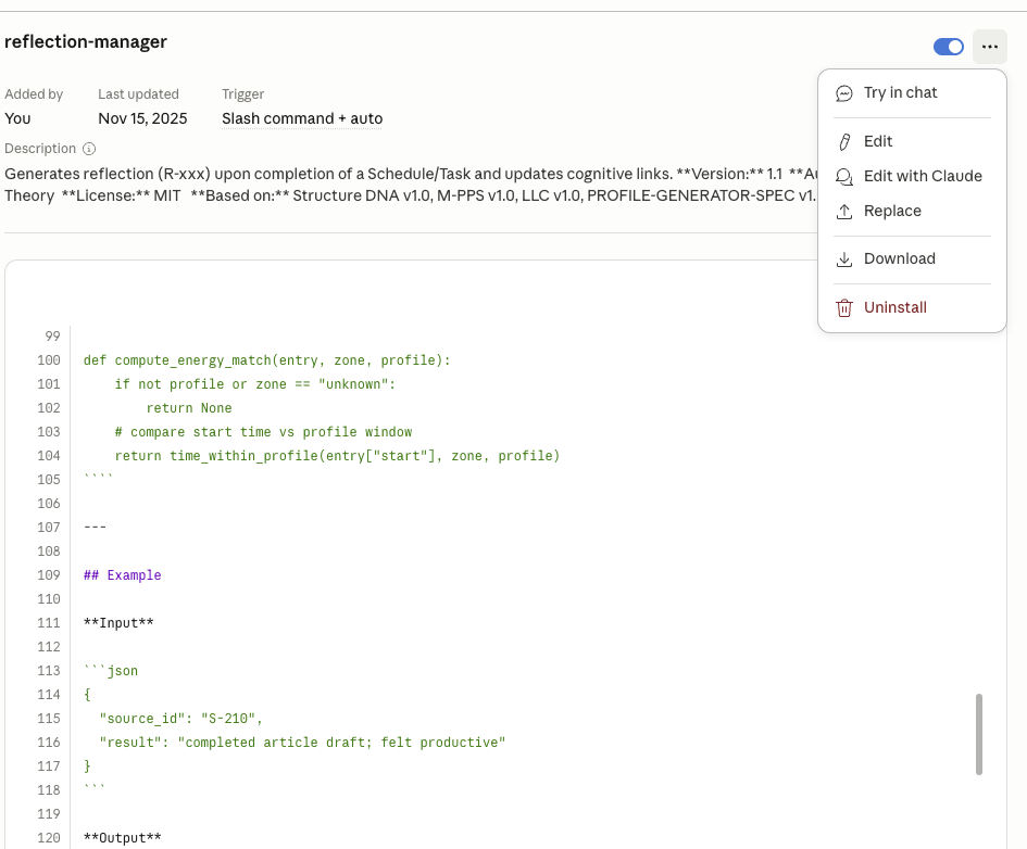So yes, technically it’s editable but would I want to edit it myself? And is it portable, say to another AI? For me, no to both. I’d rather have plain Markdown that I can read and easily understand - no code or pseudocode. YMMV