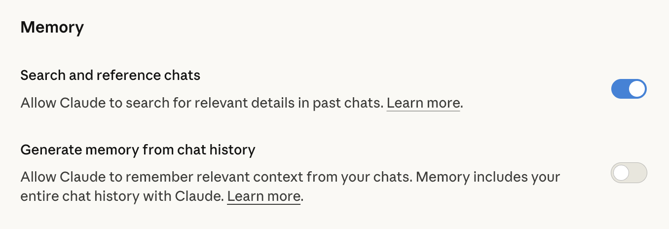 Search and reference chats is basically a search engine for your old chats. Claude will search them if you ask it to, or it thinks it might help to answer. E.g., “find that recipe you gave me for apple pie.”